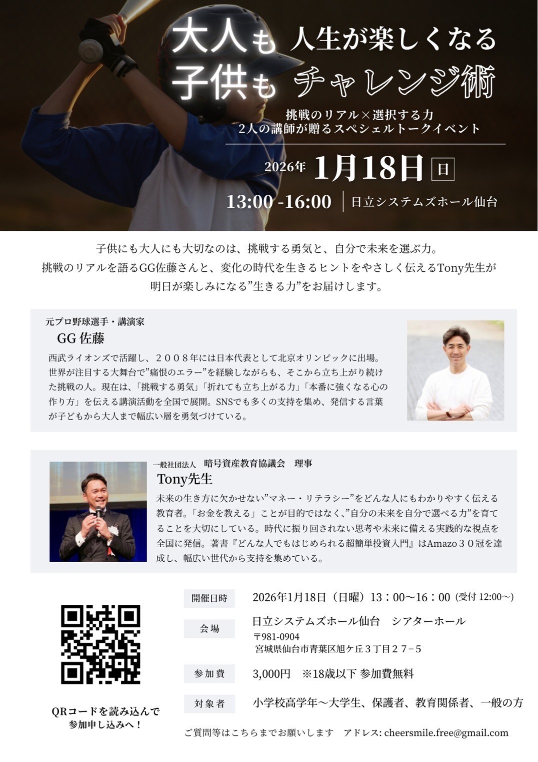 🎫 参加費:大人 3,000円 / 18歳以下 無料